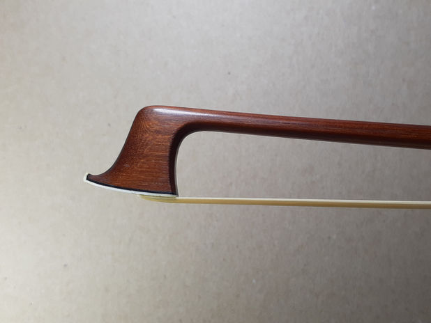 This nice and charming bow produces a crisp sound. Nice to play at the tip and easy to create a clean sound at the frog due to the light sensation at the frog. It has a good spiccato, with a jumping point around half way.
